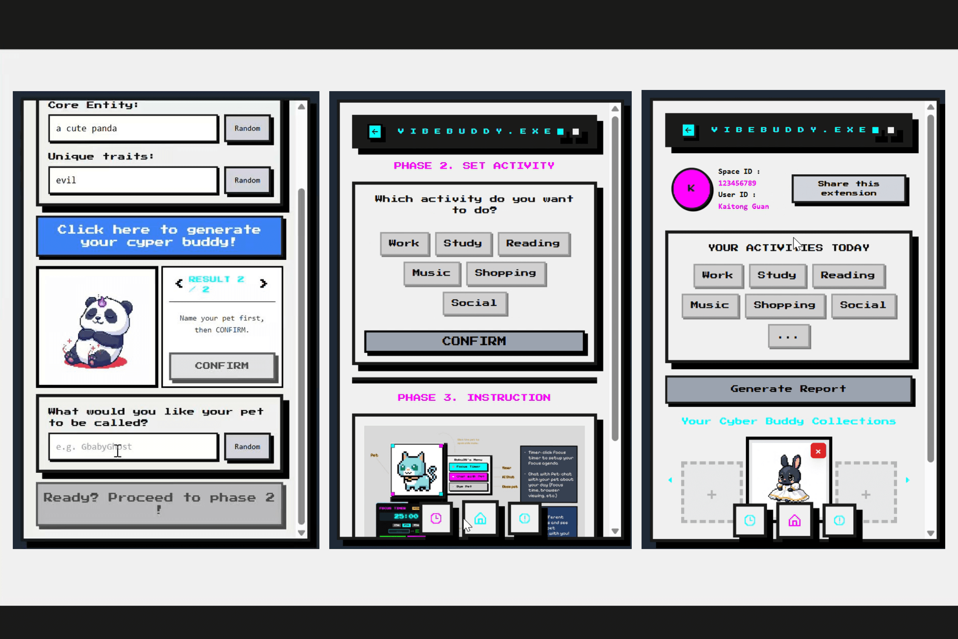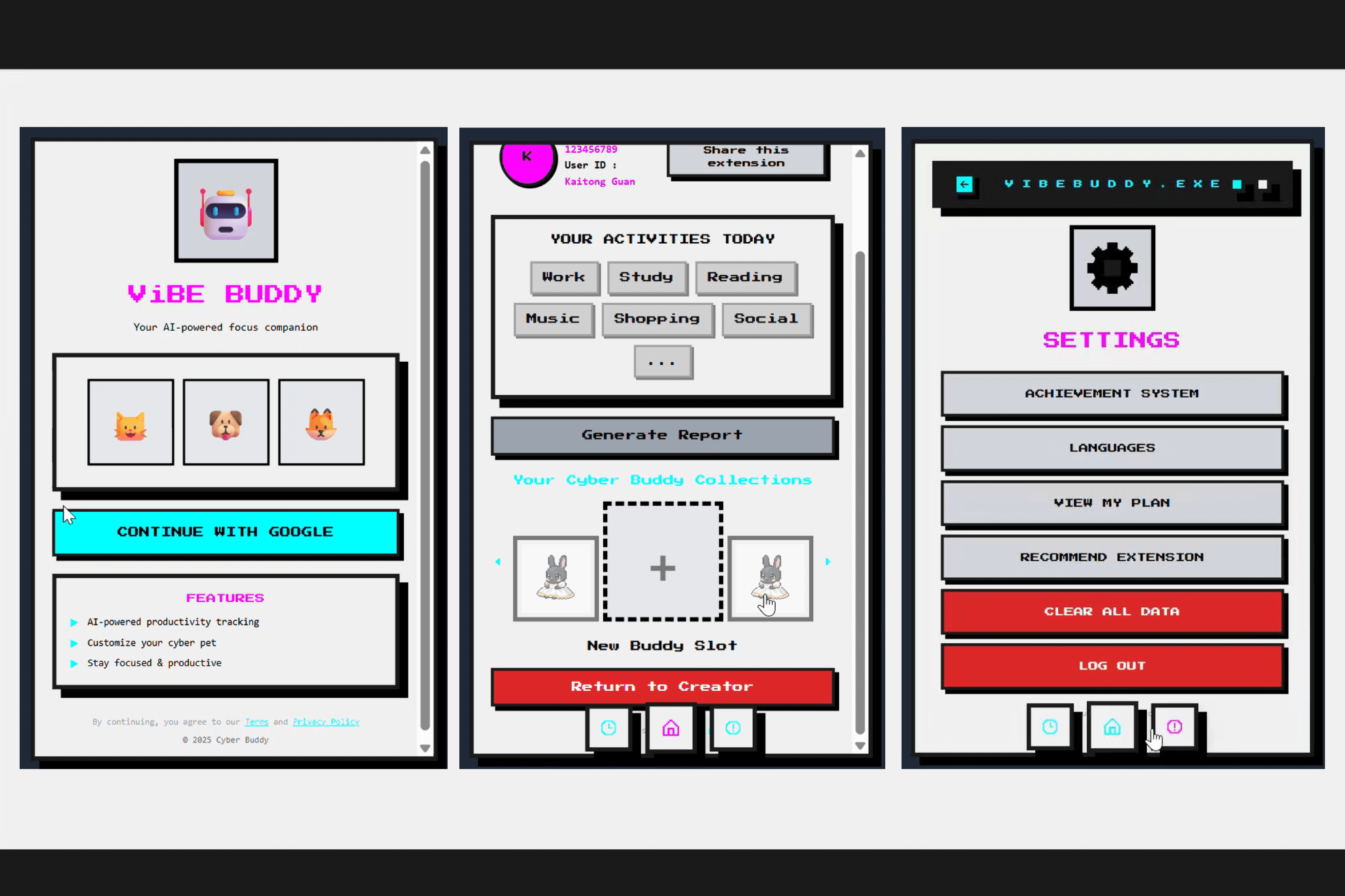 We successfully integrated the Google Gemini 2.5 Flash API for unique image generation, making every pet truly one-of-a-kind. We delivered a functional Behavior-Time Focus Report that gives users tangible data on their time spent across classified contexts, linking the virtual companion directly to real-world productivity.