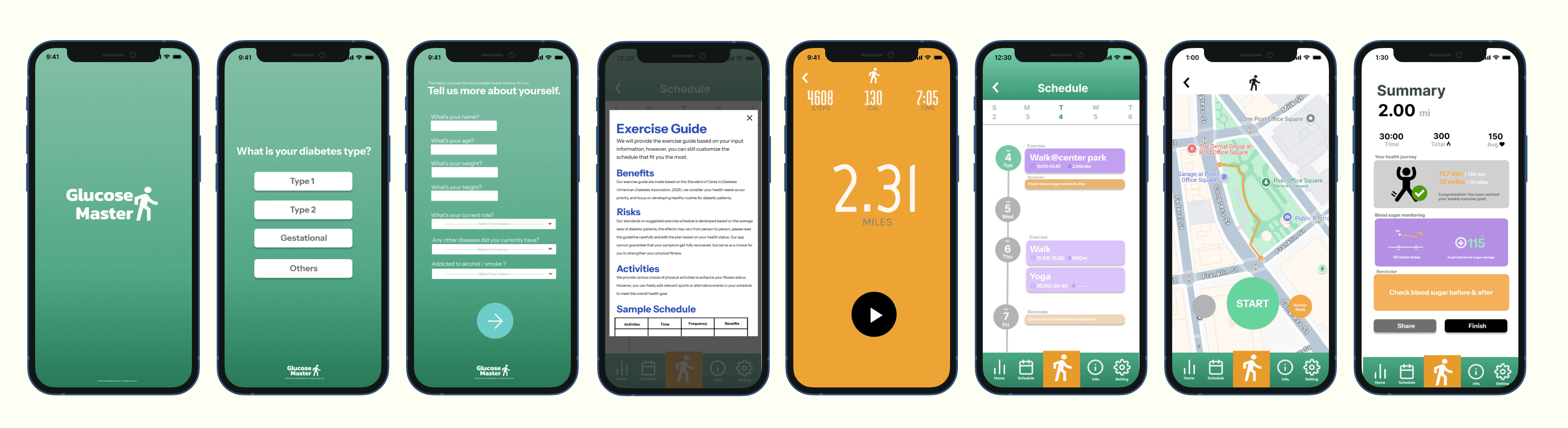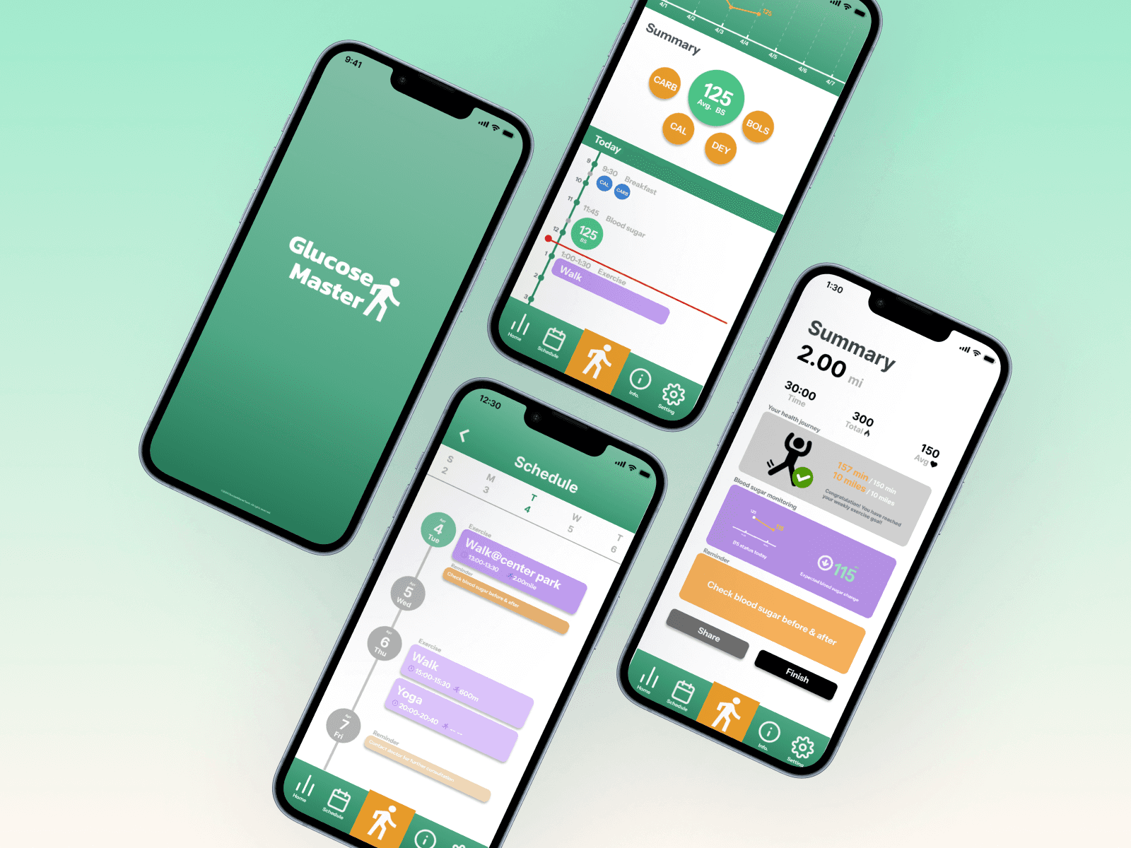 In response to the problem of diabetes patients needing to closely monitor large amounts of bodily data, our team has developed a comprehensive tracking app, Glucose Master, to encourage diabetic patients to track and maintain a healthy lifestyle, further enables users to schedule daily exercise activities and track metrics of their changing condition using a connected fitness tracker.