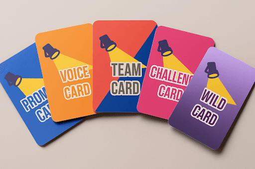 By intermixing on-topic challenge cards (which introduce bias-related constraints), we ensure players remained immersed and open to insights without defensiveness.